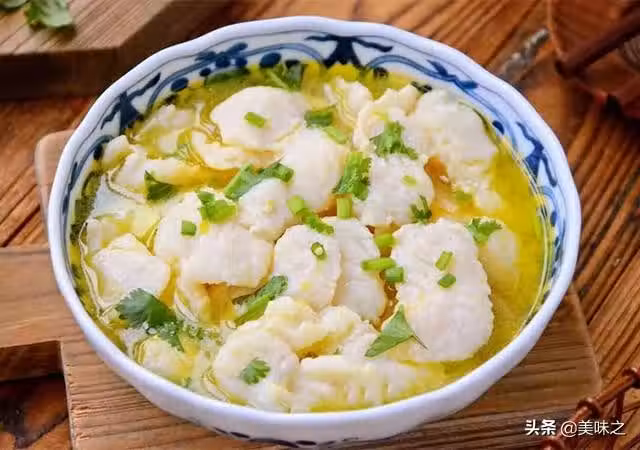 7、酸湯燒開後放入魚片大火煮開,煮魚片的時候不要用筷子或鏟子去攪,等燒開後再從鍋邊緣輕輕翻炒一下。