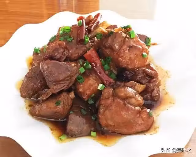 7、湯汁快收干時加糖、雞精調味,撒上蔥花出鍋。