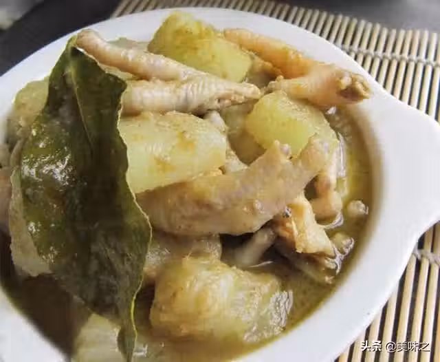 雞爪230克、冬瓜250克、檸檬葉3片、泰式綠咖喱1+1/2勺、魚露2勺、椰糖1小匙、椰漿適量、色拉油適量、檸檬汁半個。