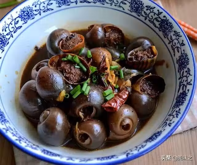 9、再下入田螺燒開,改小火再煮半小時左右,田螺塞肉就做好了。