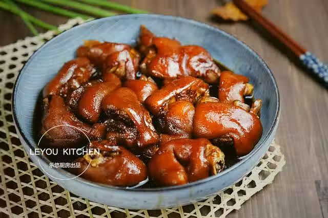 第一步:準備食材。豬蹄2個、冰糖小半碗、香蔥幾根、姜適量、桂皮2塊、八角3個、干辣椒3個。