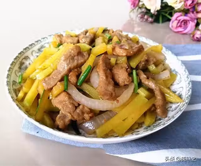 1、裡脊肉切成條,加鹽、料酒、生抽、水澱粉、油拌勻腌制半個小時。