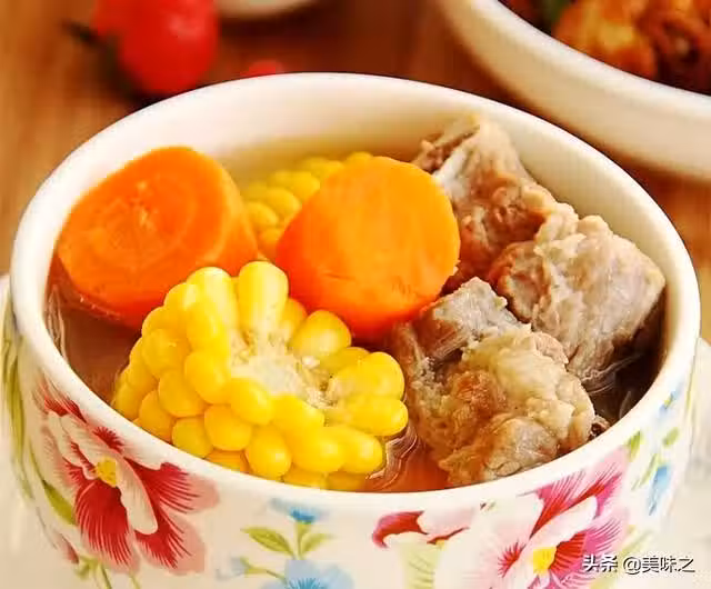5、放入胡蘿蔔,玉米後再煮三十分鐘,加入鹽即可食用。