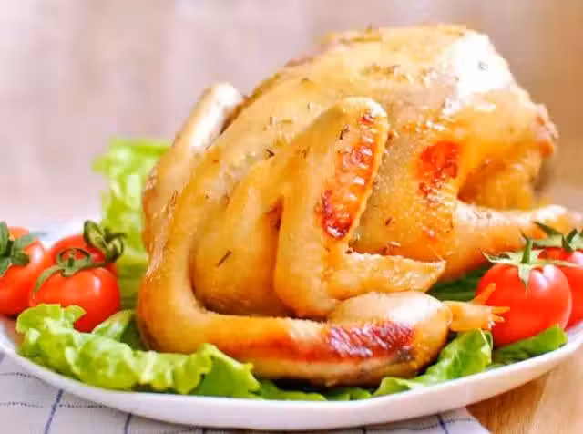 1. 雞去毛開膛,去除內臟後洗淨(最好購買已經處理好的清遠走地雞或三黃雞)。用兩湯匙料酒、一湯匙老抽、一湯匙鹽調勻,均勻地抹在雞身內外,再在表面撒一層迷迭香香草末。將整隻雞裝入保鮮袋中封口,冷藏醃制6小時以上。