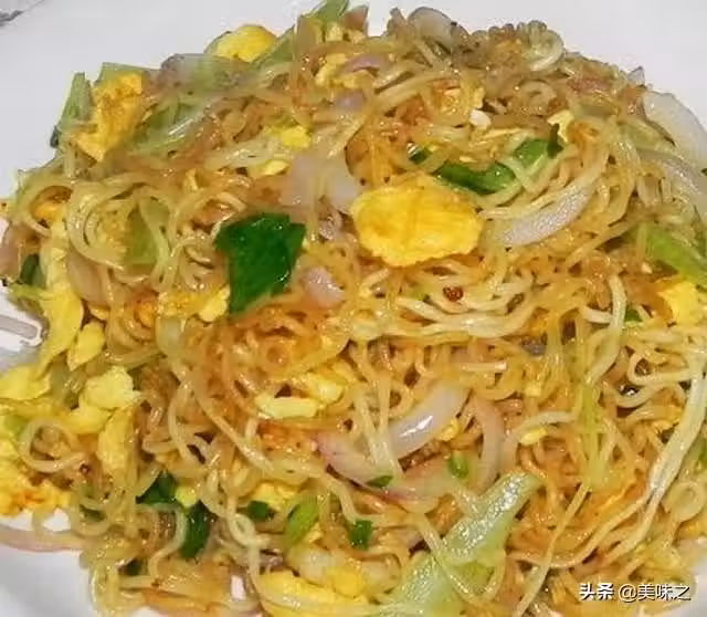 方便麵一包、雞蛋兩個、洋蔥半個、芹菜適量、蒜末適量、姜適量、蔥花適量、醬油適量、蚝油適量。