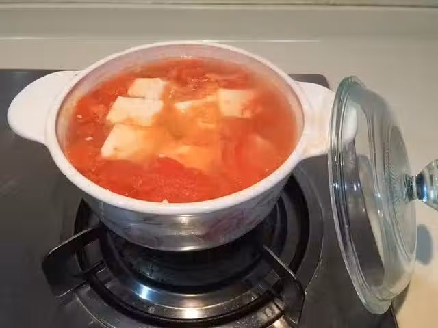 小鍋一個加水燒開加入西紅柿