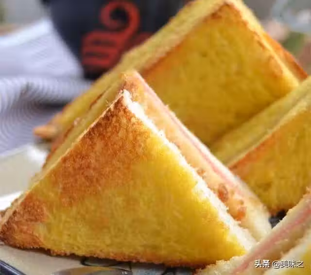 5、再蓋上一片吐司,在吐司的對摺切開。