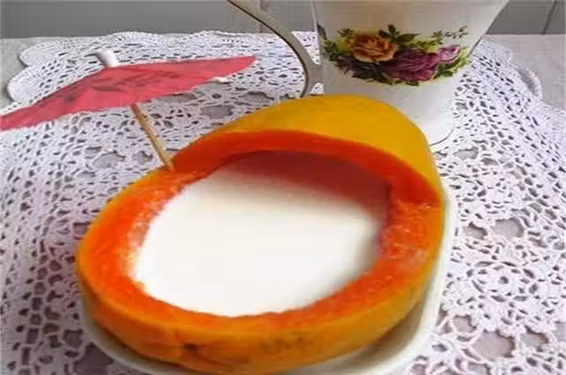 木瓜燉牛奶是以木瓜和牛奶為主要食材的美容菜譜,口味香甜,具有抗衰美容、隆胸養顏、平肝和胃,舒筋活洛的功效。