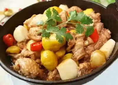 4. 加入板栗,小火燉半小時,加鹽調味,出鍋前撒少許胡椒粉即可。