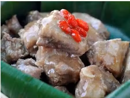 原料:肋排、棕葉、蠔油、澱粉、料酒、薑絲