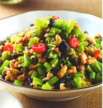 食材: 豬肉餡 (100克)、空心菜 (一捆)、姜蒜 (適量)。