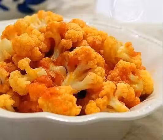 第九步:將菜花放入鍋中煸炒勻均。