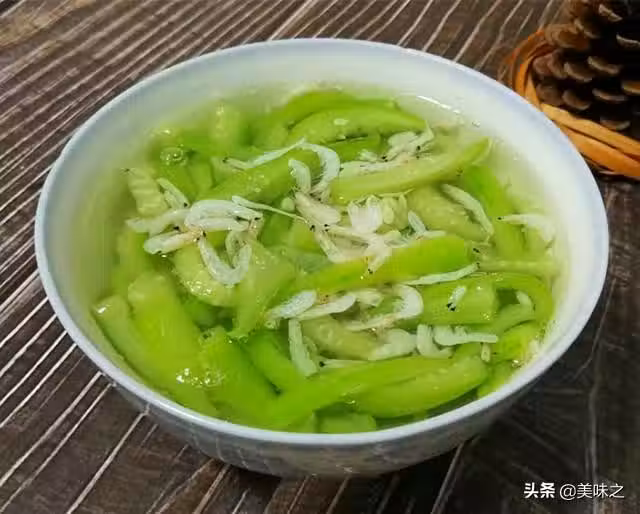 4、放入絲瓜湯中燒煮,加蔥油、鹽調味。