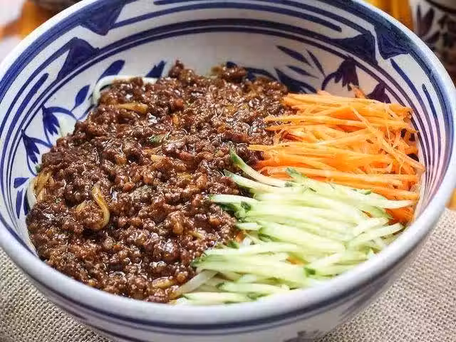 6、手搟麵煮熟,瀝水,澆上醬,擺上菜碼就可以了。