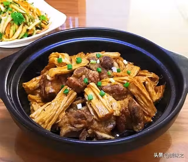 排骨適量、腐竹適量、鹽適量、冰糖適量、料酒適量、生抽適量、老抽適量、八角適量、桂皮適量、姜適量、蔥適量。