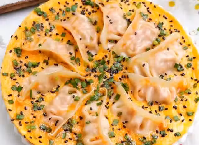 (2)將解凍好的牛肉餃子,依次放入油鍋中,小火煎至底部金黃色。