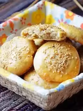 2、把油燒熱,倒入麵粉做成油酥。