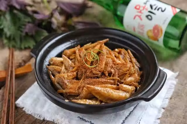 準備食材雞翅尖500克,子姜150克,料酒10克,醬油15克,蚝油10克,鹽2克,蒜末2克,孜然粉適量,辣椒粉適量,清水半碗