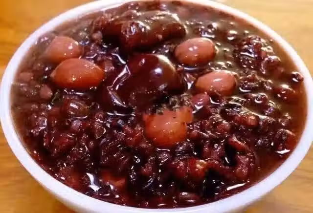 (1)浸泡米豆類:將糯米、黑米、黑豆、紅豆淘洗乾淨放入大碗中,加入適量清水浸泡片刻備用。