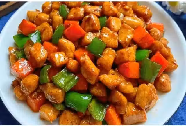 一‬、青椒‬紅蘿蔔‬雞肉丁‬