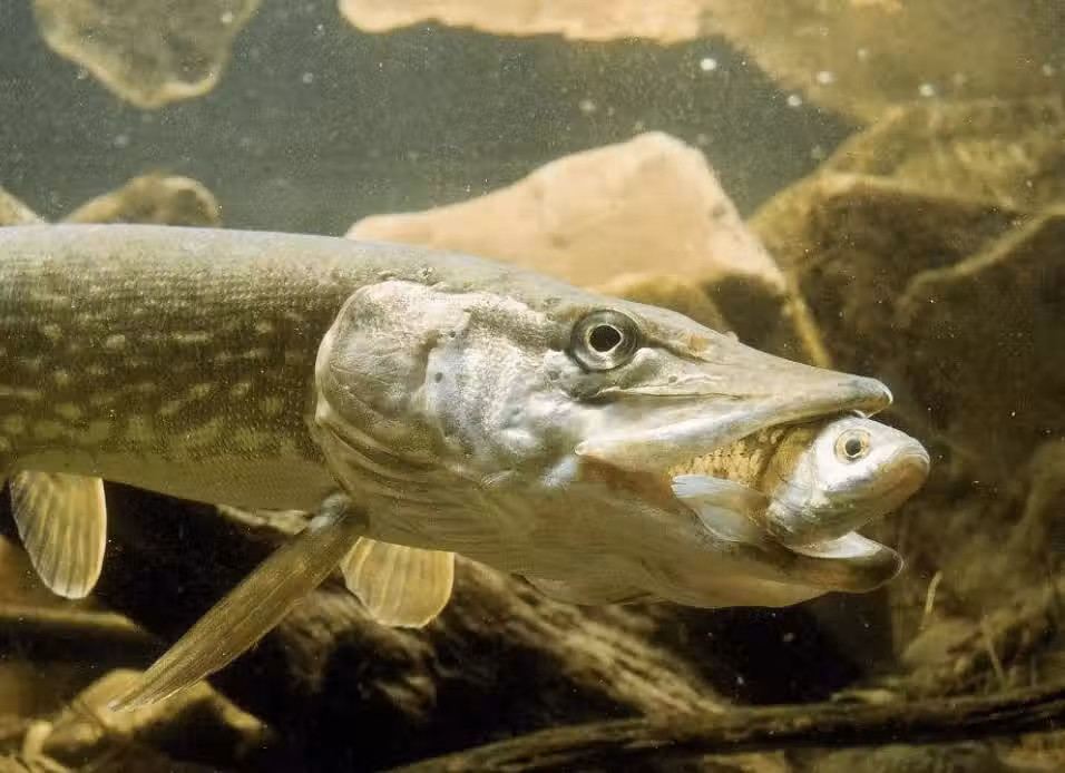 如此充足的食物供應,怪不得各路釣友上鉤的狗魚體型都十分巨大,有的甚至有大腿粗細了,個個都是「大胖小子」,而且外表還非常的混實彪悍,捕捉它們可得費老鼻子勁了。