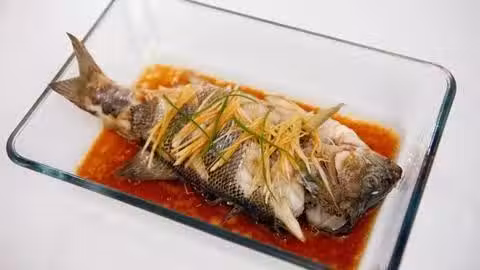 好腌魚,放入盤中,放入蒸籠,蒸15分鐘。