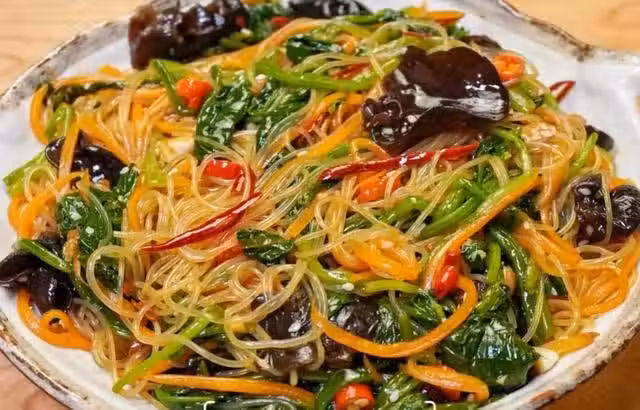 2、菠菜胡蘿蔔拌粉絲的做法: