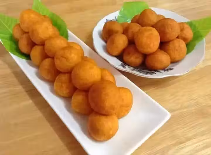 橙番薯300g(蒸熟瀝干水份,壓成泥待涼),澄麵粉40g,自發粉20g,粘米粉10g,幼糖50g