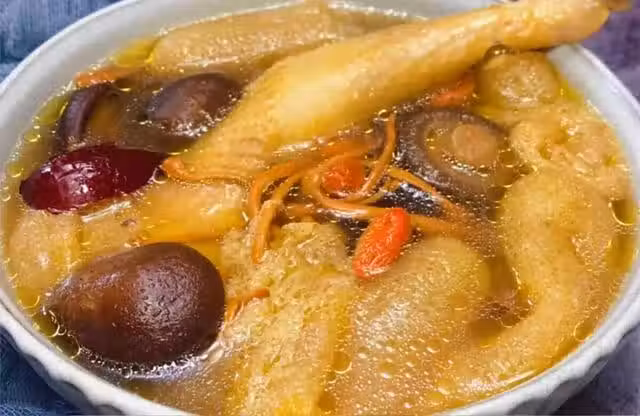 (4)再加入適量的蟲草花、枸杞、紅棗蓋上鍋蓋繼續煮至片刻。