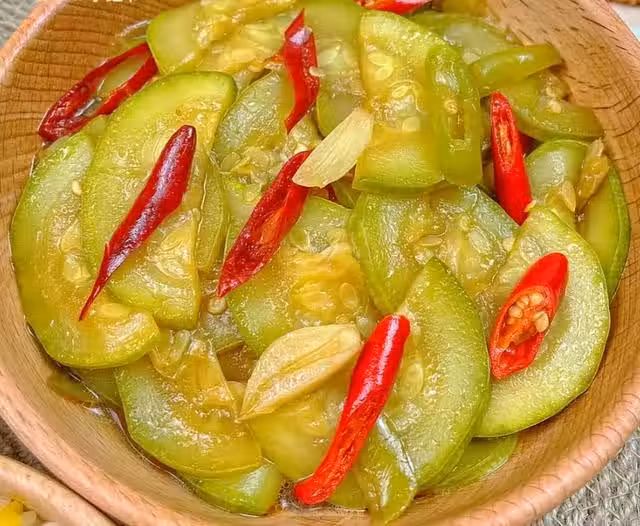 (2)鍋中熱油爆香小蔥蒜末和干辣椒,下入西葫蘆翻炒變軟。