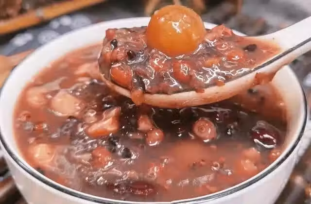 1、準備食材:糯米、糙米、黑米、薏米仁、小米、紅豆、綠豆、桂圓乾、紅棗、花生米、枸杞、冰糖