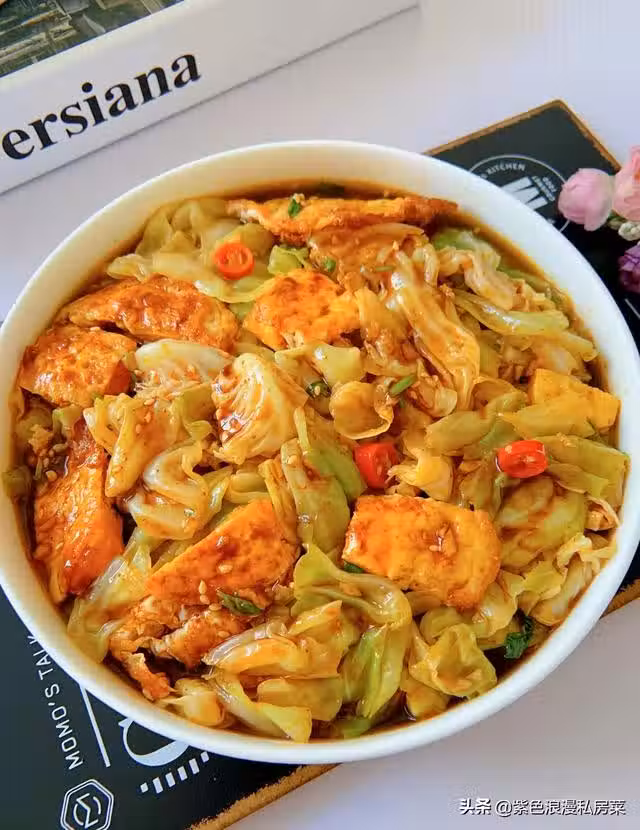 雖然煎雞蛋的熱量比水煮蛋要高很多,但是包菜的熱量很低呀!綜合起來,這一份減脂餐熱量並不高,而且味道非常好,吃得也很飽。