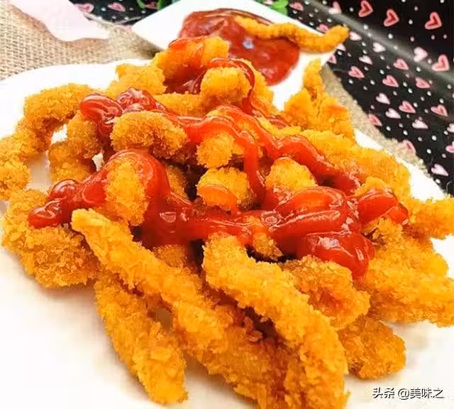 5、雞蛋打散,把肉條放入蛋液中,沾上蛋液。
