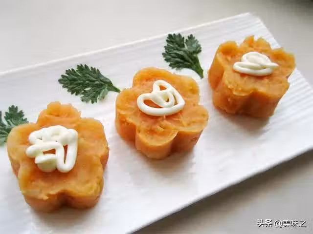 4、脫模擺盤,擠上適量沙拉醬即可。