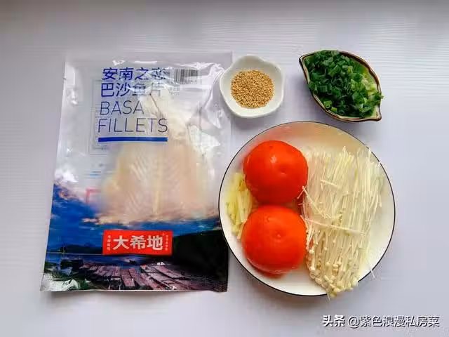 3.巴沙魚切小塊,放薑絲,蔥段,少許鹽,一勺料酒,一勺黑胡椒粉 一勺玉米澱粉,拌勻腌10分鐘。