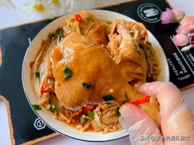 今天的無油蒸雞腿,很好地解決了減肥期間飲食的煩惱,鮮嫩多汁肉質細嫩的大雞腿,吸飽了湯汁的針金菇,有葷有素,香味濃郁,放了一點小米椒,有一點辣,不油不膩,讓人吃一口就愛上了,真的是太解饞了。