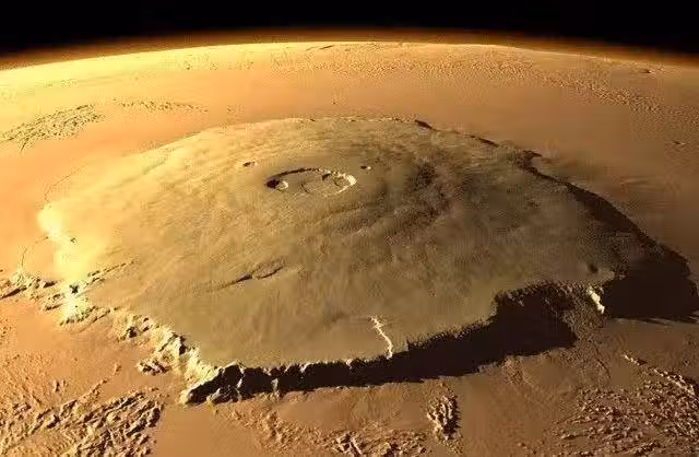 你現在所處的位置是距離火星大陸數百千米的高空之上,在這里你會看到火星之上有一個巨大的亮點,而它就是火星第一高峰——奧林帕斯山。高度達到了驚人的21.6千米,相當於我們地球第一高峰珠穆朗瑪峰的2.4倍,大約相當於7200層大樓的高度,它如同火星身上的一顆大豆,突兀地出現在火星的大陸之上,那麼,為什麼火星之上會出現如此巨大的山峰,它究竟占據了火星多大的一塊面積,又為何比我們地球最高峰高了這麼多呢?