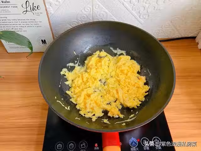 6.鍋中放油,倒入蛋液,炒散後盛出備用。