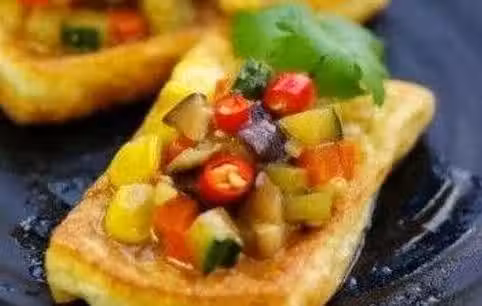 1.洗凈豆腐,切成小塊,洗凈切碎香菜,切胡蘿蔔,切碎姜