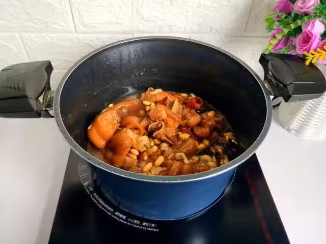 步驟十:時間到,關火後不要開蓋,多燜一會,這樣豬蹄才會軟爛入味。