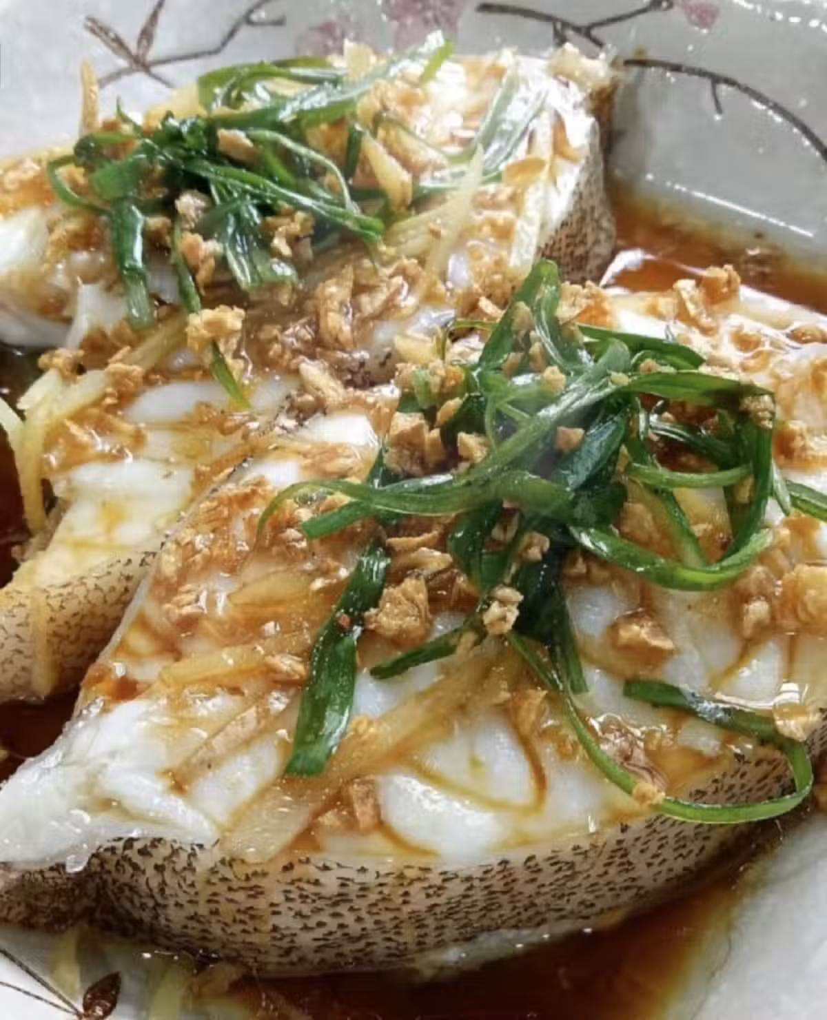 4。把生抽,胡椒粉和麻油攪拌均勻淋在魚上,再把滾燙的2湯匙炸蒜蓉油淋上即可