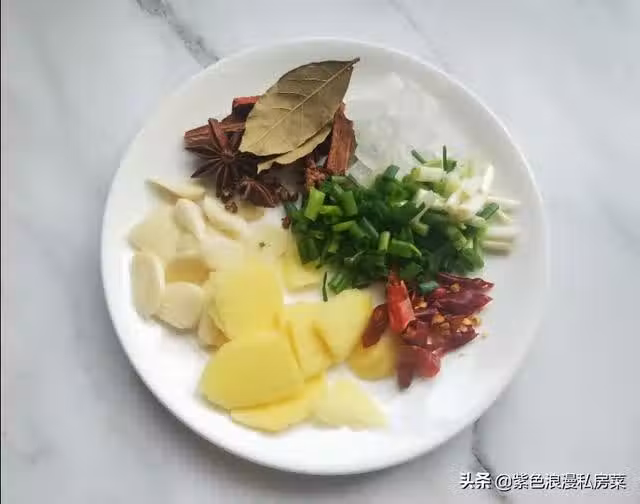 步驟二:準備佐料,大蒜切片,生薑切片,香蔥切碎,干辣椒切段。
