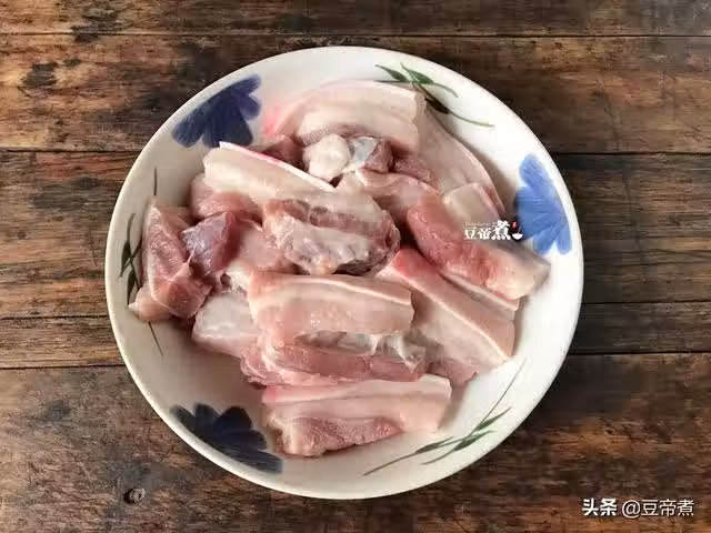 2、五花肉的要求稍微需要注意一點,就是最好買那種五花三層或者像我這樣的。能買到五花三層的自然是最好,如果不喜歡五花肉怎麼辦了。那你就直接前腿肉切塊吧!