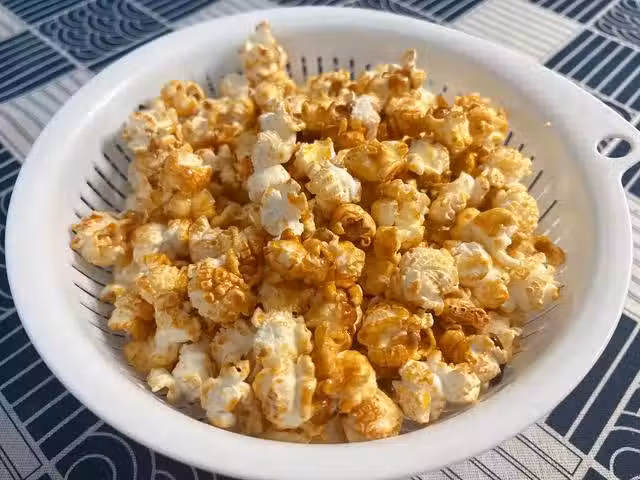 焦糖爆米花,只用一把玉米粒做一鍋,酥脆可口,追劇必備小零食
