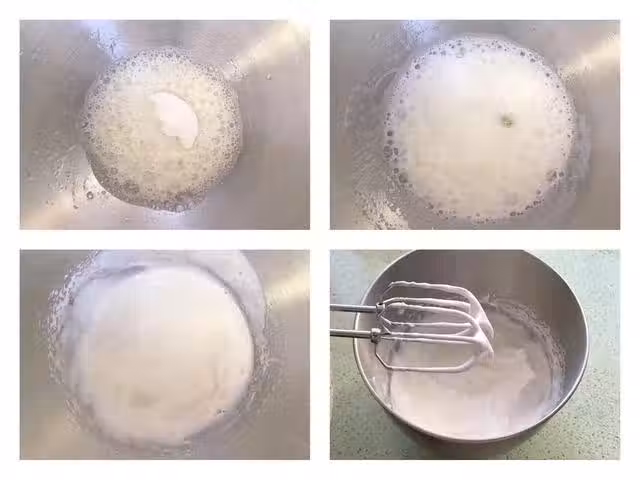 4、將一半的蛋白霜放入蛋黃糊中切拌均勻,然後再將麵糊倒入蛋白霜中切拌均勻即可,將麵糊裝入裱花袋中,平底鍋小火燒熱,將麵糊擠成等大的圓餅,等麵糊表面出現大的起泡,這個時候可以輕輕地翻面了,翻面後再烙幾十秒就可以出鍋了。