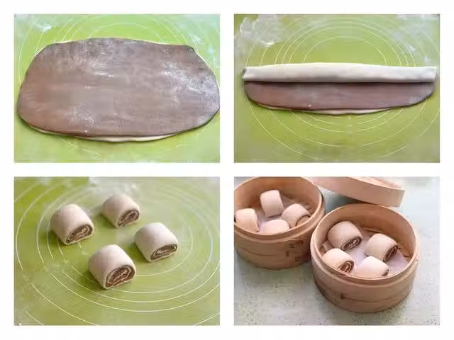 第四步:饅頭醒發好之後,冷水上鍋蒸,上汽後開始計算蒸15分鐘即可,蒸好後關火燜3-5分鐘,這樣蒸出來的饅頭會更蓬鬆柔軟。這樣巧克力小饅頭就製作好了。如果喜歡吃甜甜的,可以增加白砂糖的用量。