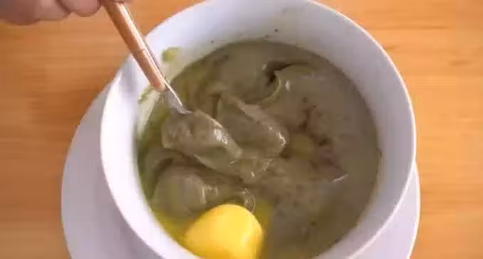 隔水蒸20分鐘變成抹茶糯米團,加一塊黃油進去混合均勻。用保鮮膜貼著蓋備用。