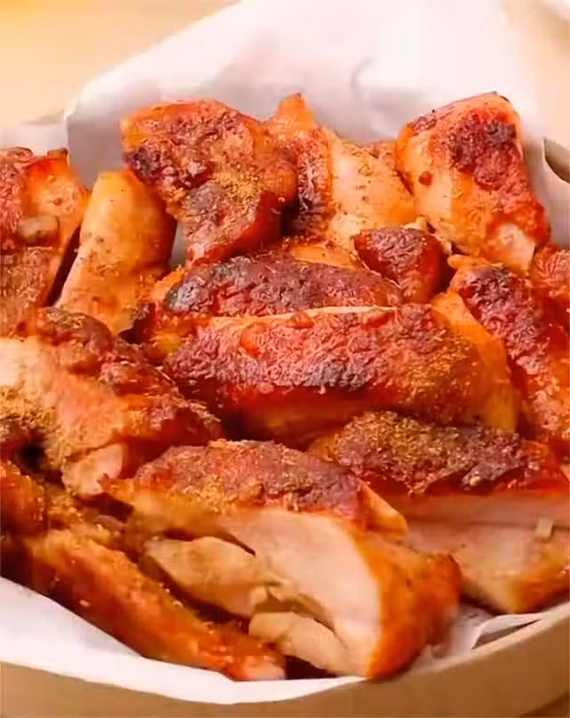 步驟三:再把雞腿肉切條,撒上適量的椒鹽,即可開吃。