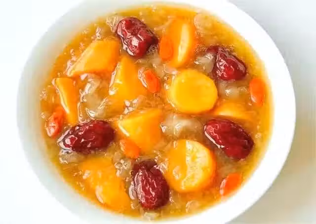 食材準備:紅心紅薯,銀耳,紅糖,紅棗,枸杞等。