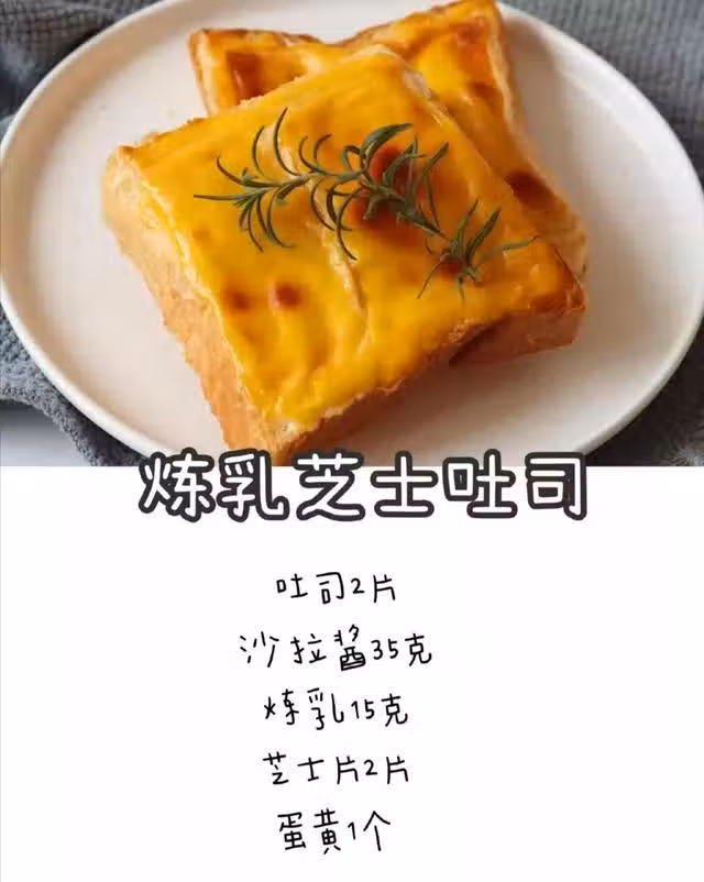 吐司2片,沙拉醬35克,煉乳15克,芝士片2片,蛋黃1個